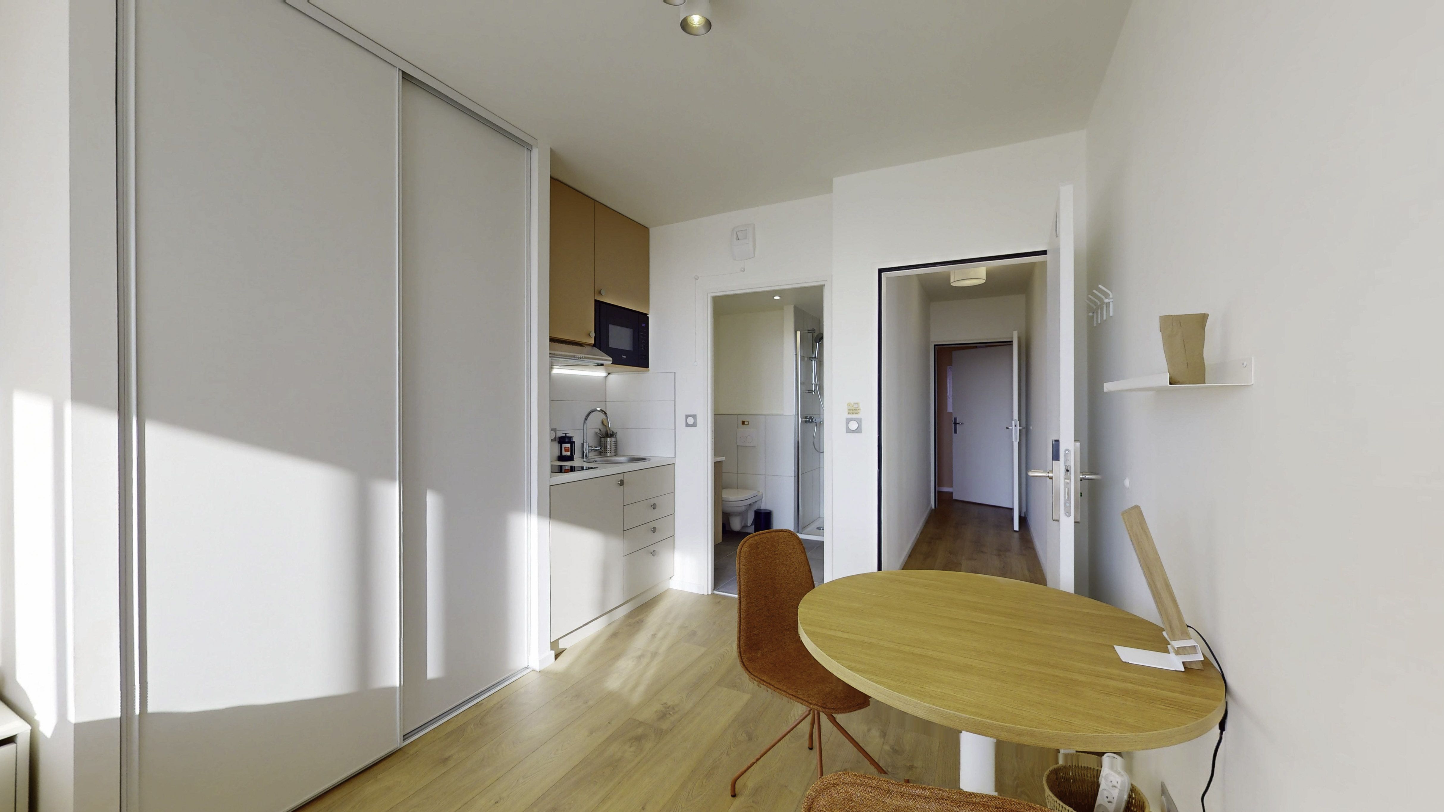 It offers 104 studios, divided into 16 coliving “homes” (6 to 7 studios per apartment), with each tenant having their own bedroom, individual bathroom and kitchenette, while sharing a common kitchen and living room for greater conviviality.